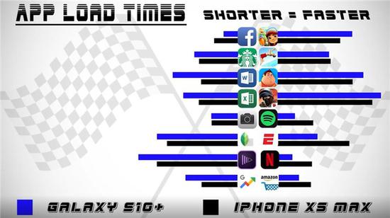 目前,三星最新旗舰Galaxy S10系列已发布,搭载高通骁龙855处理器,辅以8GB内存等等安卓旗舰标配硬件;另一方面,iPhone XS Max现在已经有六个月之久,其搭载了苹果的A12仿生处理器和4GB内存。对于两款机型,外媒PhoneBuff进行了运行速度对比。