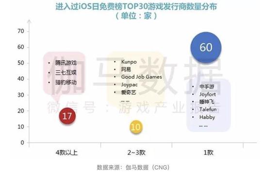 相比于RPG等重度产品,休闲游戏的研发门槛更低,创意性更强,大厂控场能力较弱,为中小企业留下了市场机会。报告显示,进入过免费榜TOP30的99款游戏中,涉及发行商达到87家,除了腾讯游戏、网易游戏、三七互娱、中手游等大厂外,还有大量的中小企业与海外游戏公司。