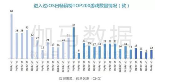 8。随着游戏版号恢复发放,2019年4月进入过iOS日畅销榜TOP200新游数量,出现一定的回升。